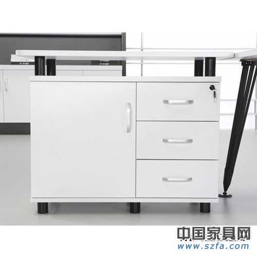 ?鋼腳配有橫檔, 側(cè)柜背板為白色,分左右?