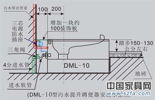 2、DML-10型:向高處或遠距離排放污水,暗藏水箱(電泵沖水),壓力釋放自動沖水。