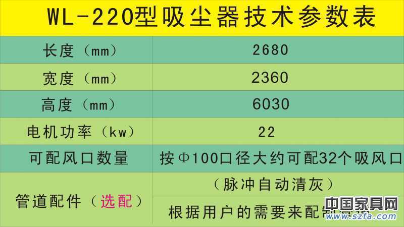 WL-220型除塵器技術(shù)參數(shù)表如下