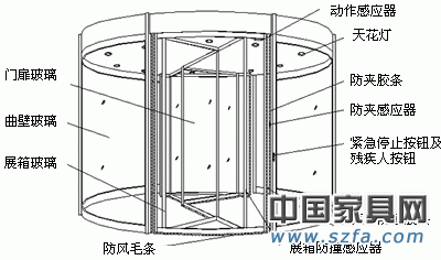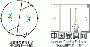 2、防夾感應(yīng)膠條:安裝在展箱立柱與旋轉(zhuǎn)門出入口右側(cè)立柱上,如碰到物體或受到擠壓,門扉會馬上停止轉(zhuǎn)動,防止夾傷行人;