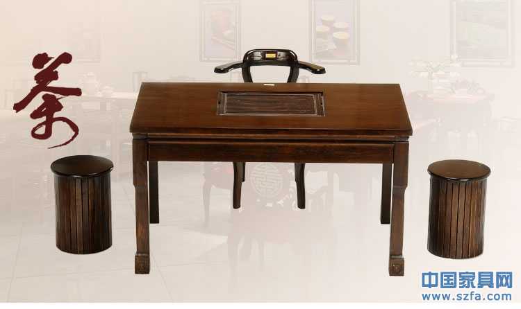 比一壺紅木家具/功夫茶桌實(shí)木仿古家具黑胡桃木方形茶桌073