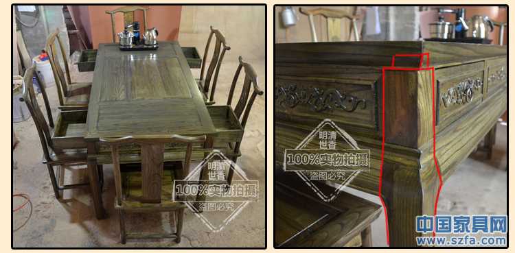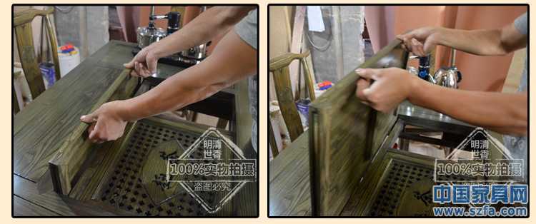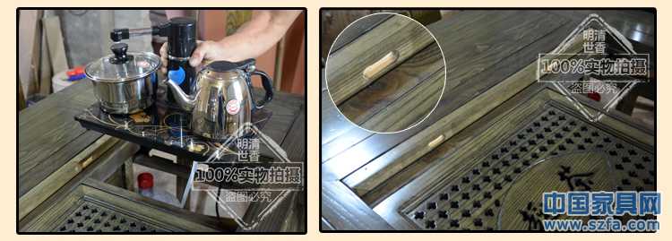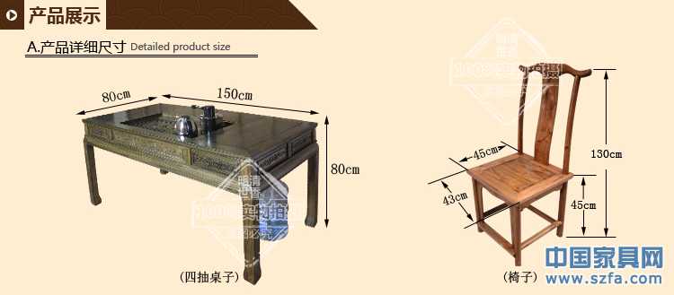 產(chǎn)品名稱:四抽屜帶電磁爐茶桌 材 質(zhì):南榆木 顏 色:柚木色 紅木色 茶青色 老紅木色 花梨色 尺 寸:長150厘米 寬80厘米 高80厘米 工 藝:傳統(tǒng)榫卯結(jié)構(gòu),純手工漆