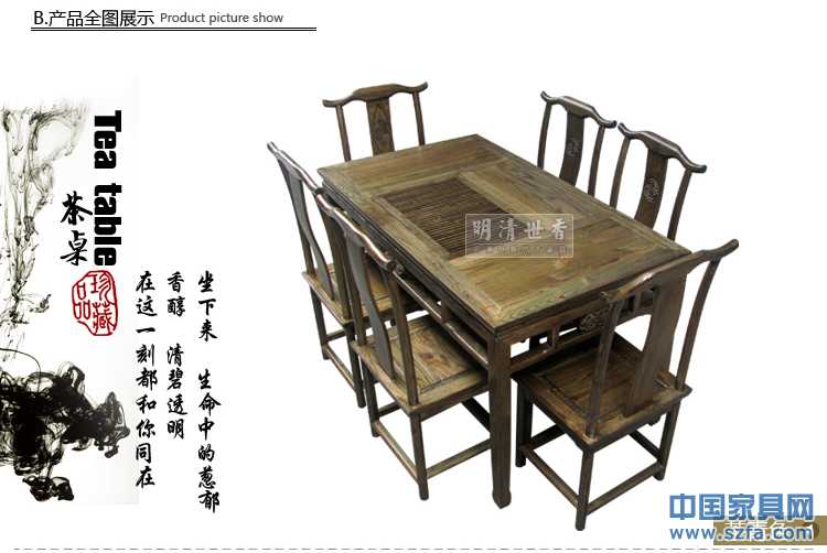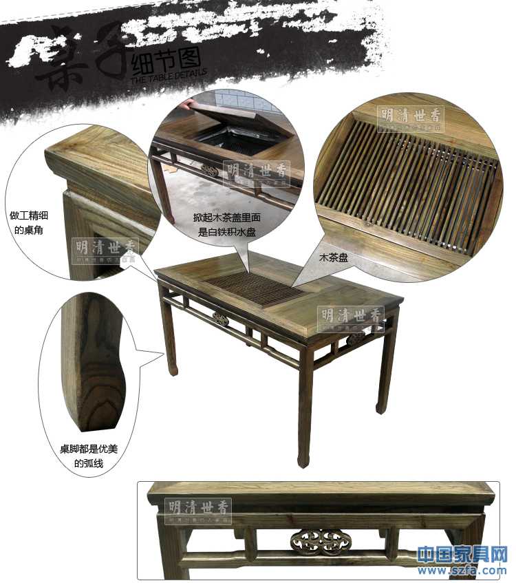 功夫茶桌實木 家具 實木茶桌 榆木茶臺 餐桌椅組合