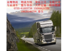 以上線路一律實行整車零擔,當日發(fā)車,專線直達,從門到門,專人負責,信息反饋快,全程聯(lián)保,誠信價平,歡迎來人來電洽談,您只需一個電話,一切由我們來做!              深圳市金鷹物流貨運服務公司為您提供深圳貨運,深圳物流,深圳搬家,深圳搬遷,深圳中港物流貨運,深圳吊裝,報關業(yè)務,是一家值得信任的深圳貨運物流搬家搬遷公司.我公司已在多個網(wǎng)站注冊,只要您輸入“深圳金鷹貨運”就可以找到我們。深圳轎車運輸
