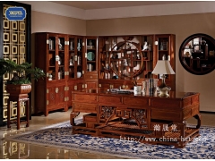 雙門書柜與博古架,集書架與收藏為一體,轉(zhuǎn)角設計使整體高度與弧度視覺高大穩(wěn)健中又不失柔和靈動,配上2米2的書桌,加以寶座書椅,方正大氣,相得益彰。中西合璧的搭配集美觀與實用和收藏于一體。