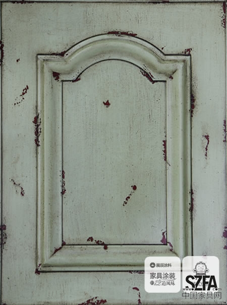 底層色、中層色采用多種不同的顏色,采用透底、砂穿等工藝手法,并且輔助以適當(dāng)?shù)钠茐奶幚?,去營造一件優(yōu)雅浪漫的法式家具。