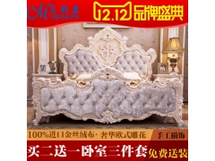 廠家直銷 絨布?xì)W式床 奢華床實(shí)木床 1.8米雙人床 別墅家具