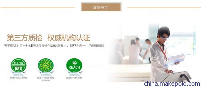 德寶床墊"360度生態(tài)健康睡眠專(zhuān)家"材質(zhì)方面選用國(guó)內(nèi),國(guó)際上知名品牌的供應(yīng)商來(lái)合作,海綿選用東亞海綿,德國(guó)進(jìn)口3D材料,馬來(lái)西亞進(jìn)口乳膠,特別是在面料上,選用了比利時(shí)百年企業(yè)。伊思麗紡織的面料,在面料上面不僅加了專(zhuān)利的Intense防靜電處理,還根據(jù)每款產(chǎn)品的特性分別加了銀離子、恒溫、防螨抑菌等有助于人體健康睡眠的功能性面料。從各個(gè)方面比原有產(chǎn)品都有明顯飛躍,從而顯著提高了產(chǎn)品性能,德寶床墊擁有國(guó)內(nèi)多項(xiàng)睡眠業(yè)核心專(zhuān)利技術(shù),是國(guó)內(nèi)銷(xiāo)量第一,酒店業(yè)銷(xiāo)量第一的床墊品牌。