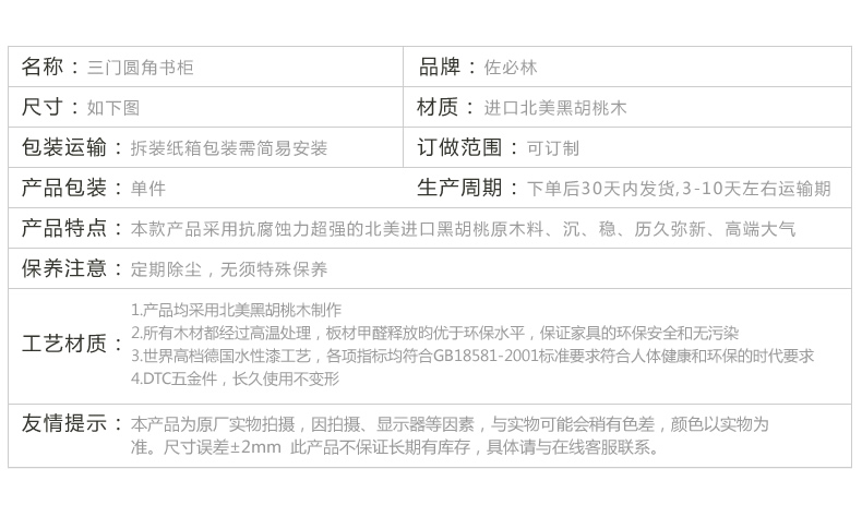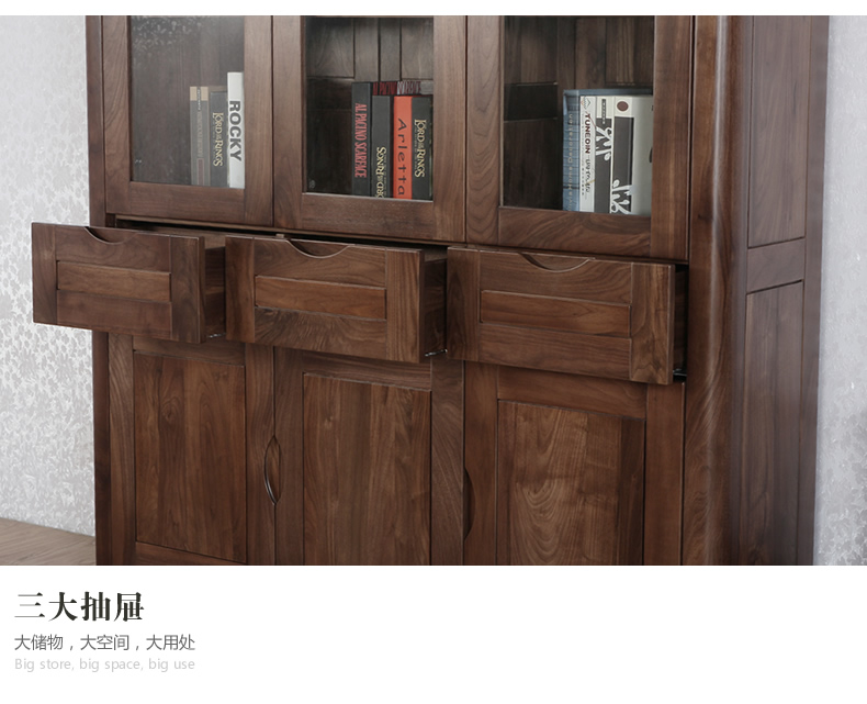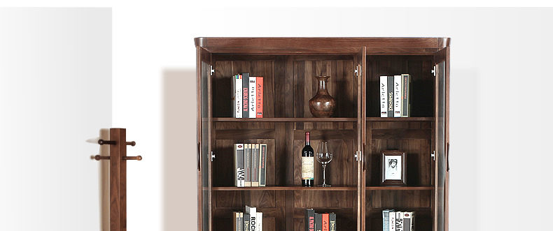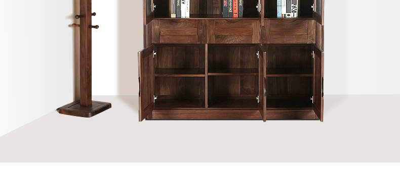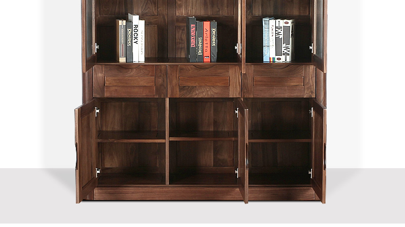 佐必林北美進(jìn)口黑胡桃書柜三門柜實(shí)木書櫥可定制組合書柜書架