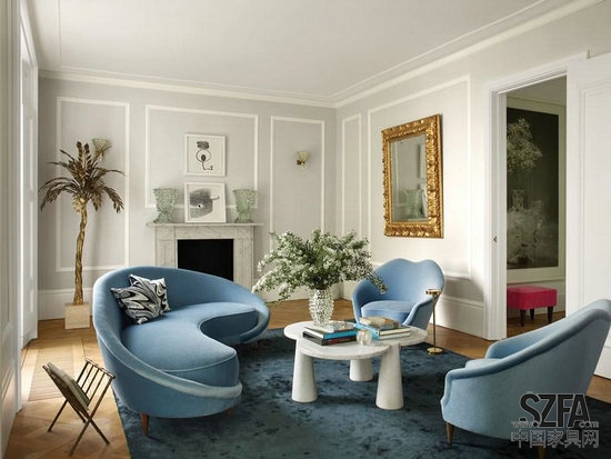 而相較于餐廳,會(huì)客廳的風(fēng)格顯然更為明快,擺放一套20世紀(jì)50年代的曲形Ico Parisi沙發(fā)座椅,在喬治亞明快的幾何線條陪襯下宛如在云端漂浮。