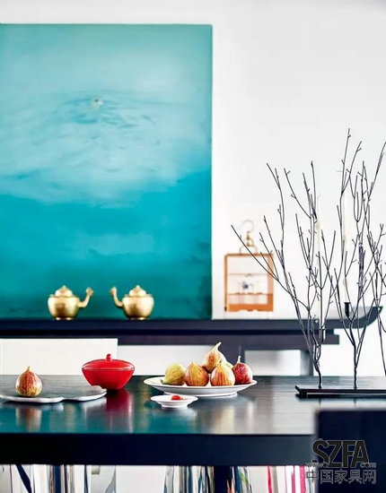 餐廳一角。簡(jiǎn)約風(fēng)的中國(guó)案幾上是馮勃最愛(ài)的一幅畫(huà)。
