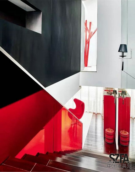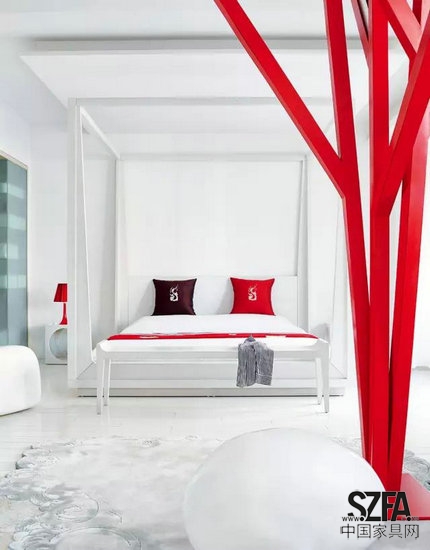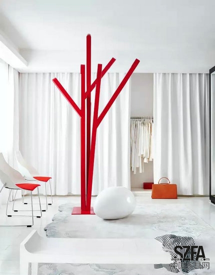 核心提示:馮勃認(rèn)為“簡(jiǎn)單、純粹并不意味著單調(diào),同色不同材質(zhì)的物品也能表現(xiàn)其豐富性?!彼募?guī)缀跏堑赇伒囊话妗白兿嘌堇[”:大面積白色打底的空間,紅色的家具、紅色的飾品穿插其間。