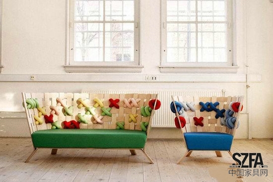 哥本哈根設(shè)計(jì)師Ellinor Ericsson曾經(jīng)提出過為什么北歐家具設(shè)計(jì)里不能加入有一些紡織元素呢,現(xiàn)在她用自己的設(shè)計(jì)給出了一個(gè)幾乎完美的答案。她的最新作品XME系列包含椅子和沙發(fā)兩種,傳統(tǒng)的木材是主題材料。在堅(jiān)硬的木材家具中嵌入柔軟的羊毛編織的布條十字交錯(cuò),錯(cuò)羅有序,別有一番情意,似乎是中國太極思想中以柔克剛的再釋。