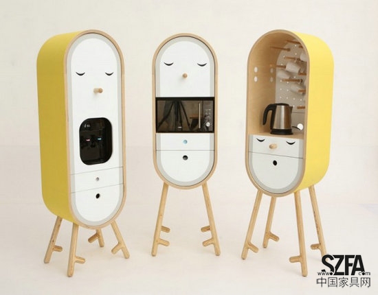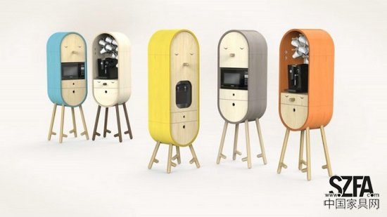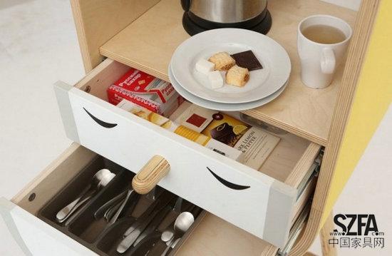 Aotta Studio由Tanya Repina 和 Misha Repin 共同成立,兩人都認為工作時有適當(dāng)休息是非常重要,因此設(shè)計了微型廚房LOLO。除了橢圓形的外觀,LOLO還有眼睛、嘴巴及鳥仔腳,樣貌十分討好。它有2至3個大小不一的柜子,讓人依自己的需求而組合不同隔層。在抽屜內(nèi)也可設(shè)有分隔欄,讓你可以輕松分類用具與零食。