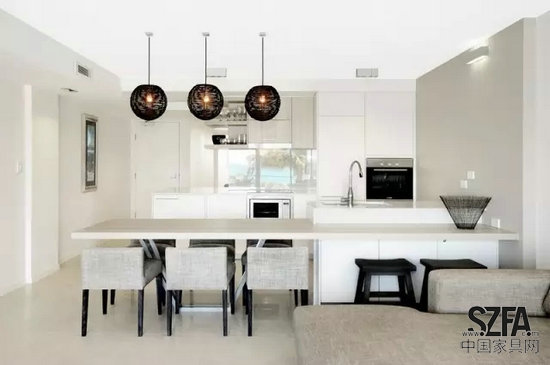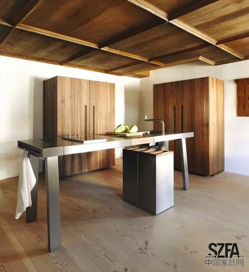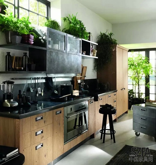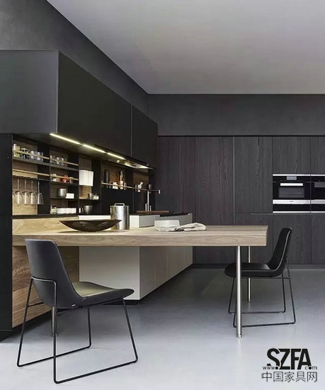 結(jié)構(gòu)緊密整合的廚房設(shè)計(jì),將工作組合臺(tái)、工具收納柜和廚房電器巧妙結(jié)合在一起,能創(chuàng)造一個(gè)真正親切沒(méi)有距離感的廚房天地。