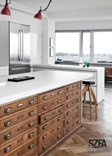 一個(gè)這樣的中島就能搞定,同時(shí)也帶來(lái)海量收納空間,也便于分類(lèi)整理。