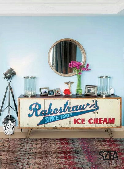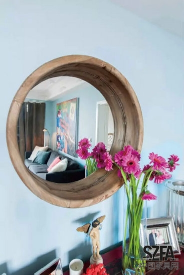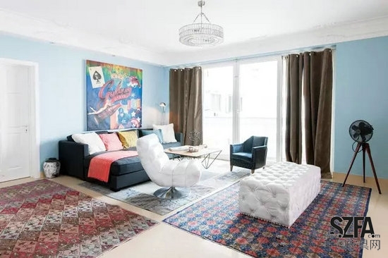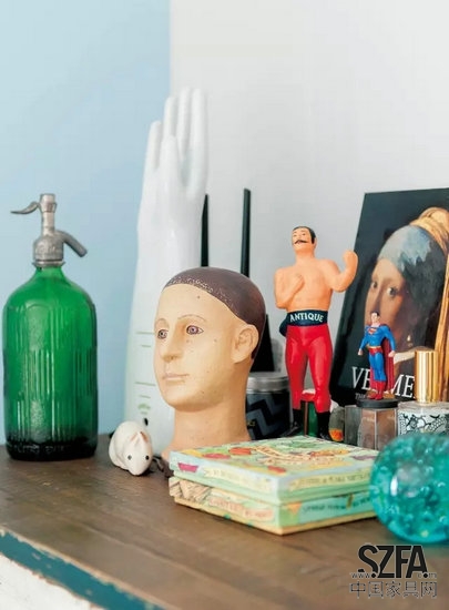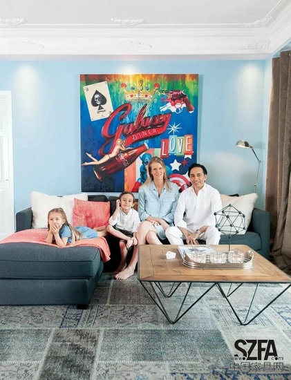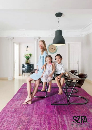 客廳的沙發(fā)、邊柜,擺件,自然都出自Casa,沙發(fā)座椅采用歐洲面料,上等比利時(shí)原麻、英國(guó)羊毛,難等可貴的是大部分原材料都屬于環(huán)保材質(zhì),例如茶幾,一張純手工完成的復(fù)古咖啡桌,使用老松木制作,家里的小朋友喜歡在上面隨手涂鴉。手工地毯是來(lái)自尼泊爾,由居住在當(dāng)?shù)氐膫鹘y(tǒng)藏族家庭采用古老技法和材料,以傳統(tǒng)手工編織法編織而成。材料采用百分之百的西藏羊毛,每英寸打一百結(jié),為該羊毛所能達(dá)到的最大密度,這是西藏和尼泊爾的工匠們一代一代地傳下這種技藝,就像一個(gè)傳奇。原本我們以為客廳里鋪三張地毯是為了防止小朋友跌倒碰傷,結(jié)果Capone先生說(shuō)因?yàn)閷?shí)在是太愛(ài),不知該怎么取舍,只能統(tǒng)統(tǒng)都鋪上。兩個(gè)邊柜上擺著許多小物件,不可或缺的家人照片、天使玩偶、超人公仔,還有一張戴珍珠耳環(huán)的少女畫像,經(jīng)典的現(xiàn)代主義與懷舊風(fēng)格完美混搭在一起。