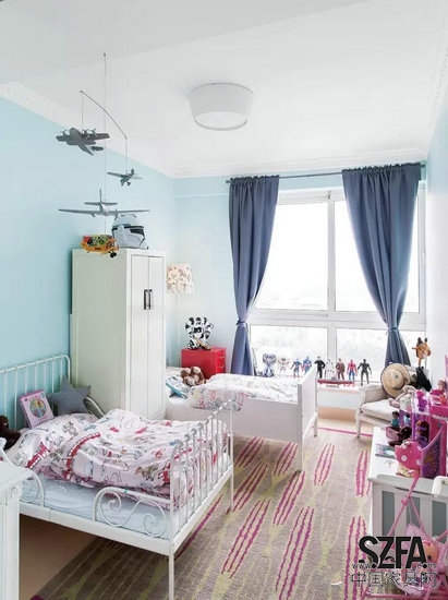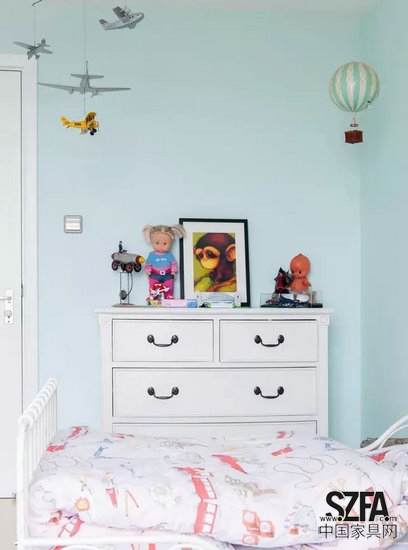 兩個(gè)孩子有自己的臥室,伸縮床真的是兒童床的首選,能根據(jù)寶貝們的身高做調(diào)整,十分實(shí)用的設(shè)計(jì)。窗臺(tái)上擺著一排英雄人物的玩偶,是哥哥還是爸爸共同的心頭好。大人的臥室十分簡(jiǎn)潔,歐式的雙人床、床凳,床邊還設(shè)了一張小小的辦公桌,看來(lái)隨時(shí)隨地的工作是作為老板也難以避免的。
