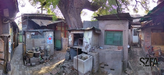 茶兒胡同(茶葉胡同)是嘈雜大柵欄地區(qū)中一個(gè)安靜的地方,距離在市中心的天安門廣場一公里, 茶兒胡同8號是典型的“大雜院”(大雜亂,庭院),曾有超過十幾戶人家在此居住。在過去的五十年里每個(gè)家庭在院子里建造了屬于自己的附加小廚房。這些特殊密度形成的附加結(jié)構(gòu)通常被視為城市的廢料,在過去幾年的整治措施中,這些構(gòu)造幾乎都被自動(dòng)消滅了。