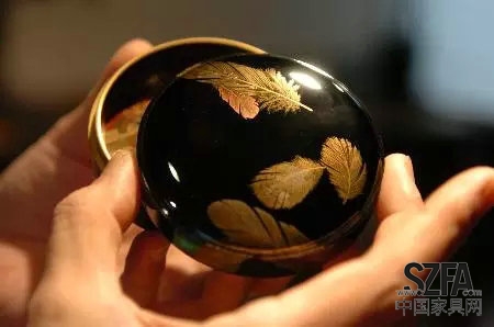 漆器是采用漆樹的汁液(漆液)涂抹于器物胎體上的工藝品。漆液在器物表面干硬就成了一層薄膜,不易剝離,能耐酸堿。經(jīng)過多次的髹飾后,器物表面閃現(xiàn)出亮麗的色澤。
