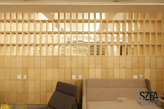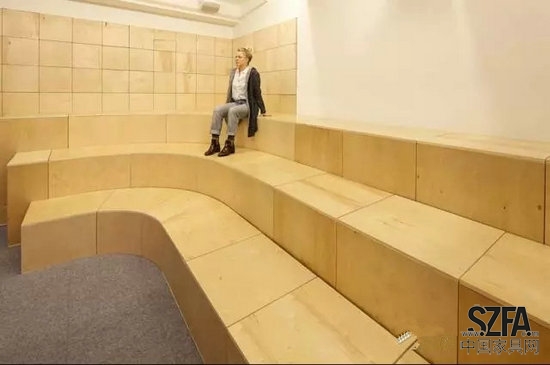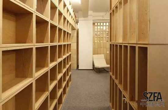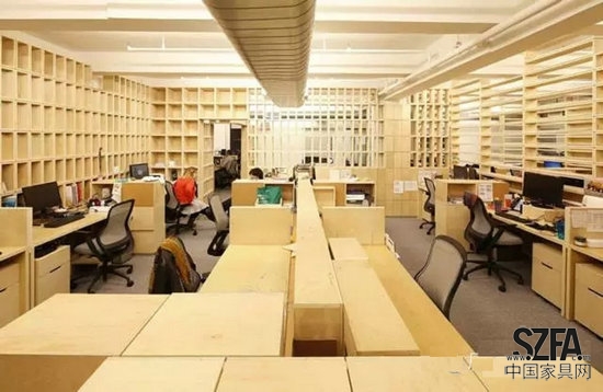 Taylor and Miller為他們開發(fā)了辦公室隔墻和家具系統(tǒng),都是由不同尺寸和直線形狀的基本膠合板箱做成的。由多個隨機的方式安排的盒子組成了隔墻,這樣就允許了空間中的視覺連通性,當移動到新的空間后,原來的盒子被重新組織,用了單一的盒子形狀來搭建整面隔墻。對于設(shè)計師來說,這個想法是:隨著辦公室的擴展,在新的空間里增加了更多的勞動力,在人口密度增加和任務(wù)有重疊的情況下,辦公有一定程度的紊亂,該建筑體系的設(shè)計,將抵消這一混亂走向;盒子的重復(fù)性和紋理將這個工作間與下一個工作間分開,給員工提供了一個安靜的空間和隱私分層。