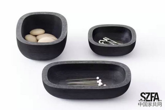 這是一個(gè)利用時(shí)下新興的熱門技術(shù)3D打印制作的紙質(zhì)漆碗,是nendo的一個(gè)探索新興科技與傳統(tǒng)手工藝結(jié)合點(diǎn)的項(xiàng)目。將紙膠粘壓縮后,使用3D打印機(jī)打印出容器,然后在這個(gè)紙容器上用傳統(tǒng)工藝上漆,完成品的紙紋透過漆就像木紋一樣漂亮。