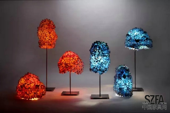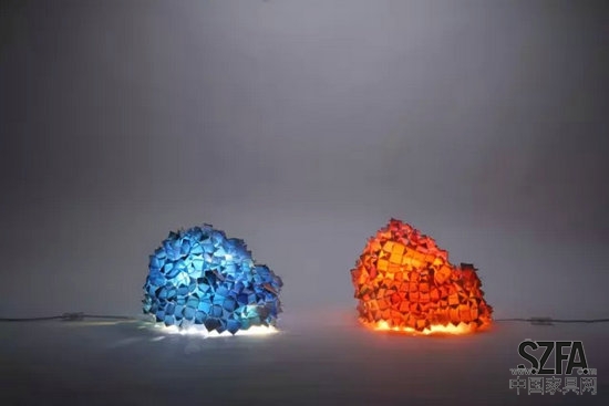 搜集廢棄的街頭廣告橫幅,剪裁成色彩繽紛的小塊,精心挑選色彩搭配,再人工縫合出別出心裁的立體形狀,便是這款名為Living Pixels的燈具。特意將廣告紙白色的一面朝外,這樣在沒有燈光的時(shí)候看起來是一個(gè)白色的燈具,而在點(diǎn)亮燈光后,隱藏在里面的色彩隨著光線滲出,十分驚艷。由來自香港的團(tuán)隊(duì)KaCaMa Design Lab設(shè)計(jì)。