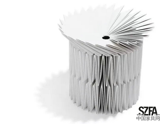 由丹麥設(shè)計(jì)師Cecilie Manz設(shè)計(jì)的這個(gè)名為Lost of Paper的小凳子,通過大量紙張巧妙的折疊賦予了這種單薄的材質(zhì)堅(jiān)強(qiáng)的承重能力,同時(shí)在外觀上呈現(xiàn)出層疊的幾何美學(xué)。那么問題來了,這個(gè)紙凳,你敢不敢坐?