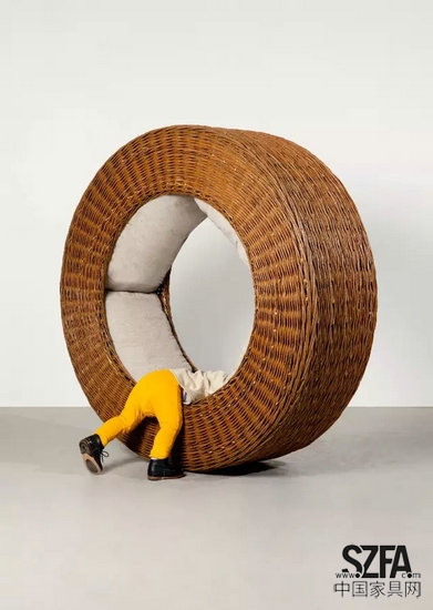 Rocking Wheel 像是一個輪子似的形式為它的使用方式提供了多種可能性。它可以是一個休息的地方,一個避難所,還可以是一個滾動玩耍的大玩具。柳條編織的外表與柔軟的內(nèi)部空間,讓孩子待在其中感覺就像是回到自己的小窩一樣。