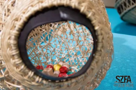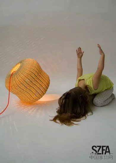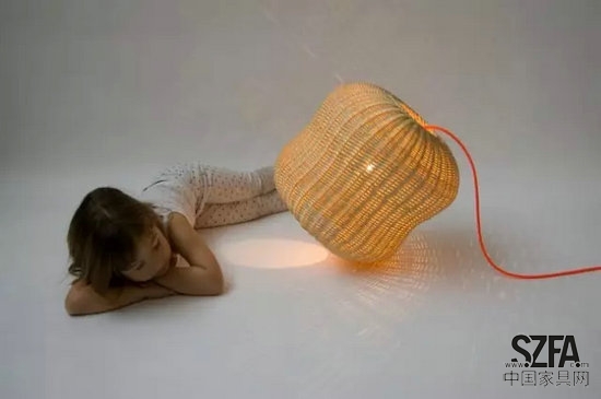 柳條編織的小夜燈。由于設計師對植物、水果、貝殼這些自然界里擁有漂亮的三維形態(tài)的生物的喜愛,這個小夜燈的形狀本來是以海膽為原型的,但受到柳條這種材料本身性質(zhì)的限制,最終的效果反而更像是一個大花生。光線透過柳條編織的縫隙泄露出來,柔和且美麗。