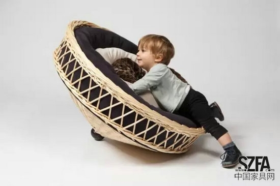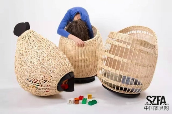孩子的世界,一半停泊在現(xiàn)實生活中,一半徜徉在想象力的海洋里。對于他們,家具可以像一只飛機,可以是一個籠子,一個陀螺或者一個輪子,無奇不有。由全球頂尖的童裝展會品牌Playtime創(chuàng)辦的PlayWithDesign展邀請了10位設計師,通過創(chuàng)作這一組用小柳條編織的家具,探索了“移動體驗”的主題。這些打破常規(guī)思維的兒童家具,讓孩子們和家具充分地互動起來,盡情地編織屬于他們的童年玩趣。