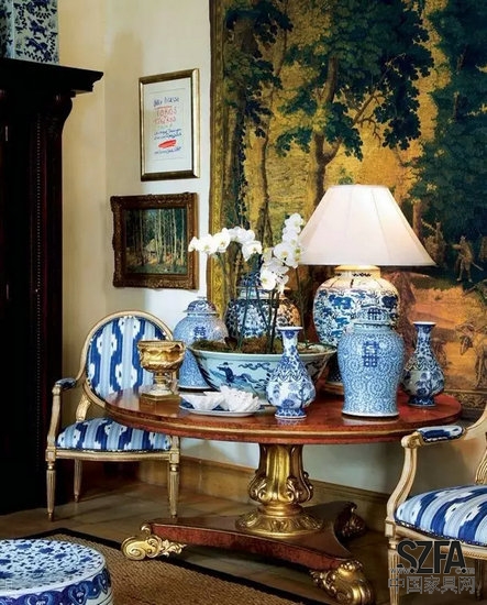 青花瓷既可以表達(dá)東方之美,又可以很完美融入西方的室內(nèi)裝飾中,甚至在現(xiàn)代風(fēng)格之下也能很好地融合。