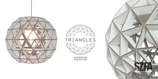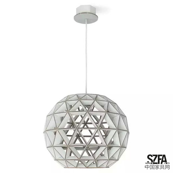 用硬紙板插接而成的一款燈具。燈光通過三角拼接的燈罩投射下漂亮的陰影,簡潔干凈。