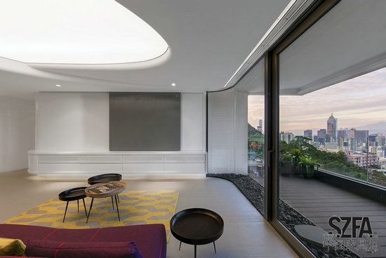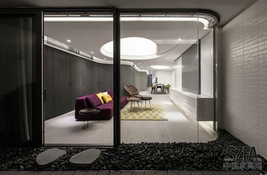 核心提示:該公寓位于司徒拔道,面積2700平方英尺,是個(gè)開(kāi)放而寧?kù)o的空間,特點(diǎn)是有長(zhǎng)16米的彎曲木墻、強(qiáng)烈的軸向視圖、發(fā)光的天花板、還有特殊隱藏的內(nèi)置墻別具特色,能適應(yīng)居住者的具體日?;顒?dòng)。