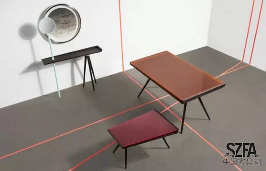 左邊的門(mén)廳桌非常獨(dú)特,高鏡子和稍微斜的桌面給這張桌子增加實(shí)用性和設(shè)計(jì)感。而右邊異形茶幾下表面帶有微小的斜度,獨(dú)特的設(shè)計(jì)為客廳帶來(lái)一些意想不到的色彩和驚喜。