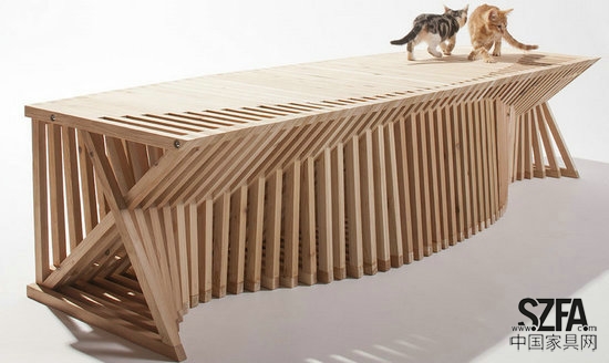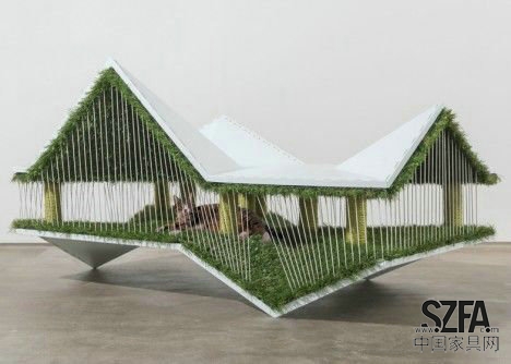 Formation Association 聯(lián)手藝術(shù)家 Edgar Arceneaux 設(shè)計的木條貓屋,像一個小型涼亭,很透氣。