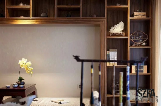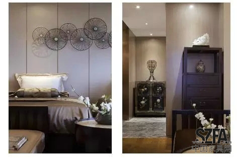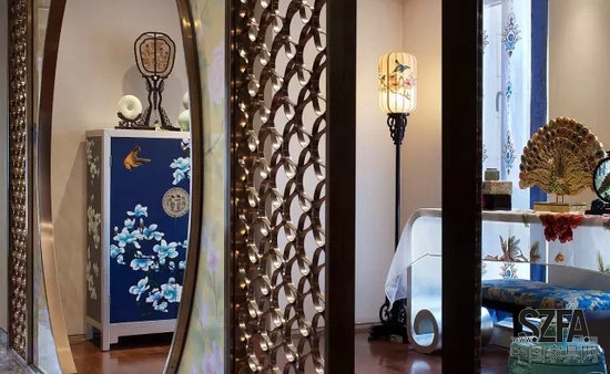 在藝術(shù)品的陳列上,則以手工刺繡、絹絲手繪為主,輔以精致飾品與玉飾點(diǎn)綴,凸顯空間的品質(zhì)感。