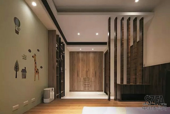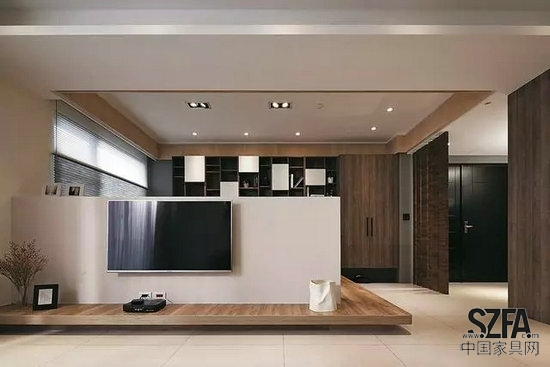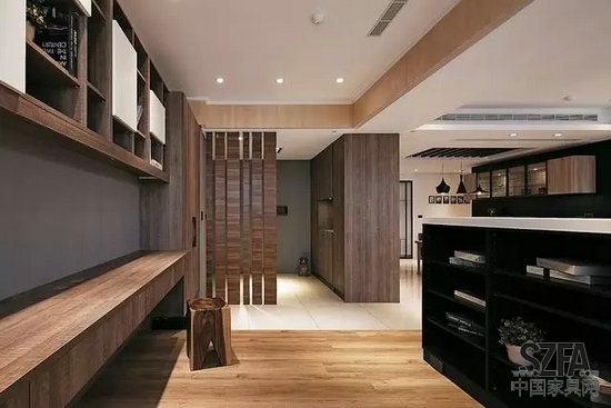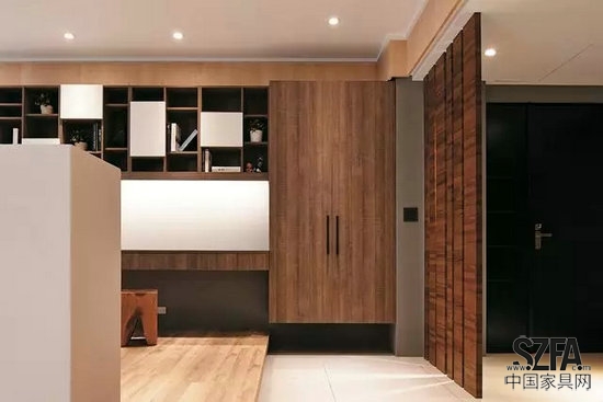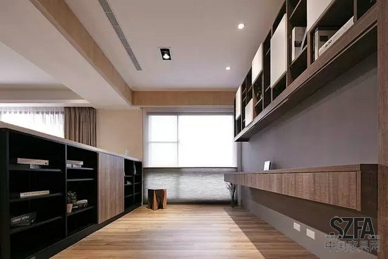 簡約線條的書柜,咖啡色的背景墻,這一切看起來都非常有質(zhì)感。