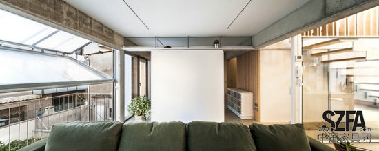 為了滿足這些要求,SAU Taller de Arquitectura事務所提出了一個明確的方案:將服務和貯藏空間移至無門窗、缺乏采光的墻邊,留出一個明確的核心空間,將周圍的碎空間整合在一起。由此,我們輕松地將臨街和朝向庭院的墻面解放出來。而這些墻面朝南或朝北的朝向,自然地變成了整個房子采光面和通風過濾器。這樣的改變還能使房子擁有自由和靈活的布局,根據(jù)住戶需要使用輕質板分隔。為了實現(xiàn)這個目標,我們會在混凝土墻中預留出隱蔽的固定點用以在日后搭建簡單的木質結構。