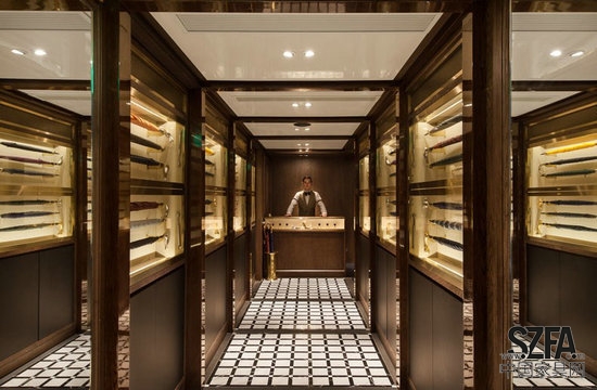 進入4300平方英尺的空間,仿佛一個奇幻的世界,其靈感來源于一位英國紳士的環(huán)球冒險,并以他最喜愛的花朵命名。通過Fox商店一道“秘密”的門,進入一個優(yōu)雅的走廊式精品店,陳列著一塵不染的金柄或銀柄傘,其風(fēng)格源于電影《王牌特工:特工學(xué)院》。