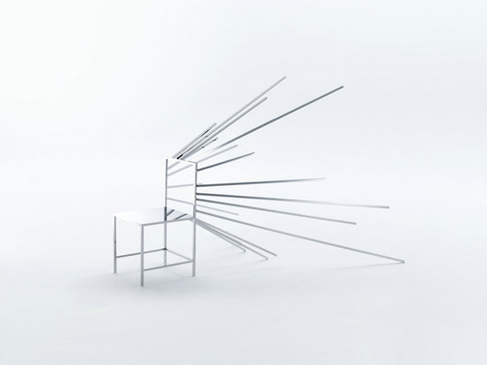 為了傳遞漫畫抽象化的特性,椅子的設計沒有加入任何色彩或材質(zhì)的信息,而是采用了鏡面。鏡子中出現(xiàn)了另一個“真實”的世界,就像漫畫一樣。