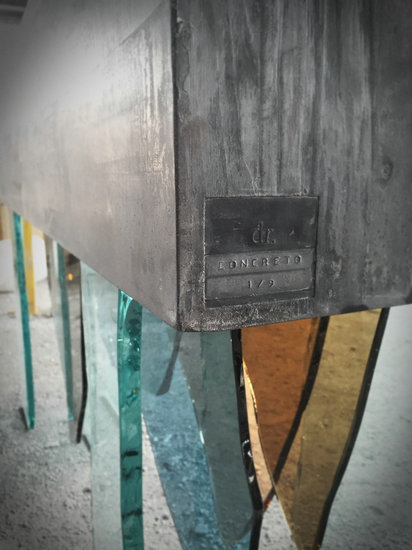 牢固沉重粗燥的纖維混凝土與脆弱輕透光滑的玻璃本就是對比強烈的兩種材質(zhì)。而設(shè)計師Daniele Ragazzo偏偏把兩種材料以相反的角色模式組合在一起,彩色玻璃作為家具的基礎(chǔ)而承受著混凝土的重量,形成讓人覺得不安的對比。這個顛覆性概念也賦予這款產(chǎn)品獨一無二的個性。