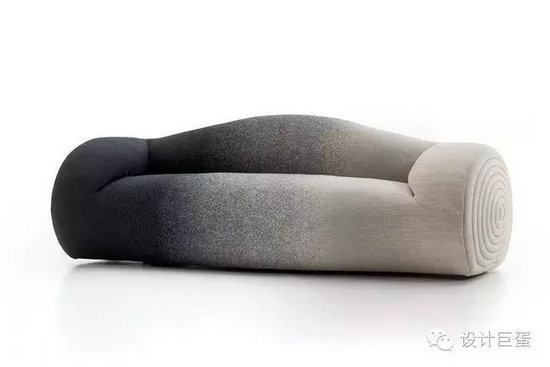 2015年設(shè)計的Gilder 是一體塑成的產(chǎn)品。Gilder 獨特的設(shè)計使得生產(chǎn)制作技術(shù)難度大于傳統(tǒng)沙發(fā)——靠背、扶手和座位全部為無縫連接。沙發(fā)外在輪廓都為柔和的曲線,底座也為圓弧形,所以Gilder 也是一款“搖椅”沙發(fā)。FEBRIK 為MOROSO 設(shè)計的獨家Blur 面料正用在次款沙發(fā)上,漸變的顏色,是此面料的一大特色。