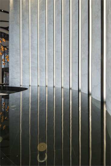 米白與深色石材作配搭,一方面配合自然亦帶來(lái)視覺(jué)上的強(qiáng)烈反差對(duì)比,同時(shí)整個(gè)空間著墨于「弧線」上,配合光線令空間布局主次分明。