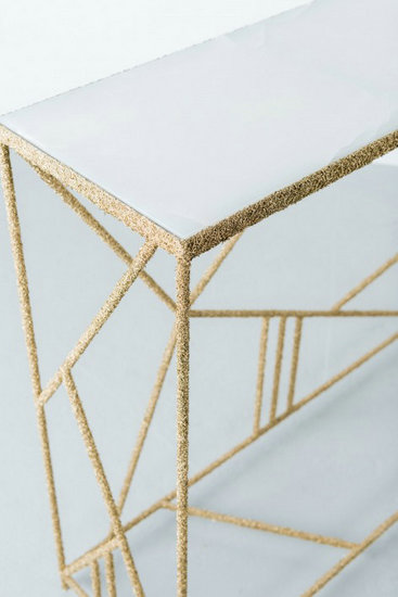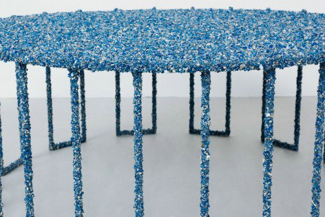 色彩各異的寶石和金屬被研磨分解成細(xì)碎的顆粒,再粘貼到支撐結(jié)構(gòu)和桌面之上。幾何化的簡潔結(jié)構(gòu)和豐富的材質(zhì)肌理形成了有趣的反差,凹凸不平的表面帶來了明顯的觸感。無論單獨(dú)放置,抑或多款組合,這系列家具都將成為室內(nèi)空間的點(diǎn)睛之筆。