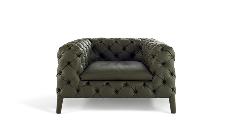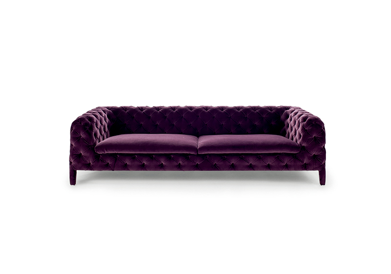 Windsor fits in with all kinds of furnishings: perfect in a traditional setting, in a modern setting it stands out like a valuable work of art. Made exclusively by hand with capitonne upholstery, the sofa has a decidedly distinctive feel. It is refined and sophisticated, yet also soft and welcoming, due to the distinctive button buried in the diamond quilting of the padding. Windsor has extended its range with an additional, extra-large sofa of 314 cm. Besides, there is a new version in velvet which gives the sofa a silky and sumptuous look.