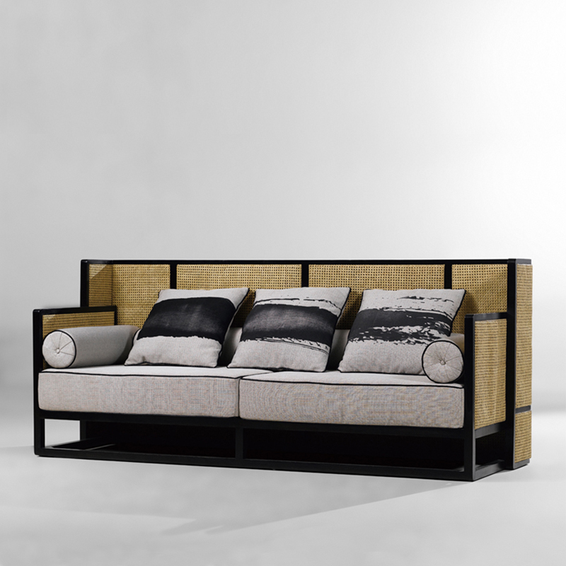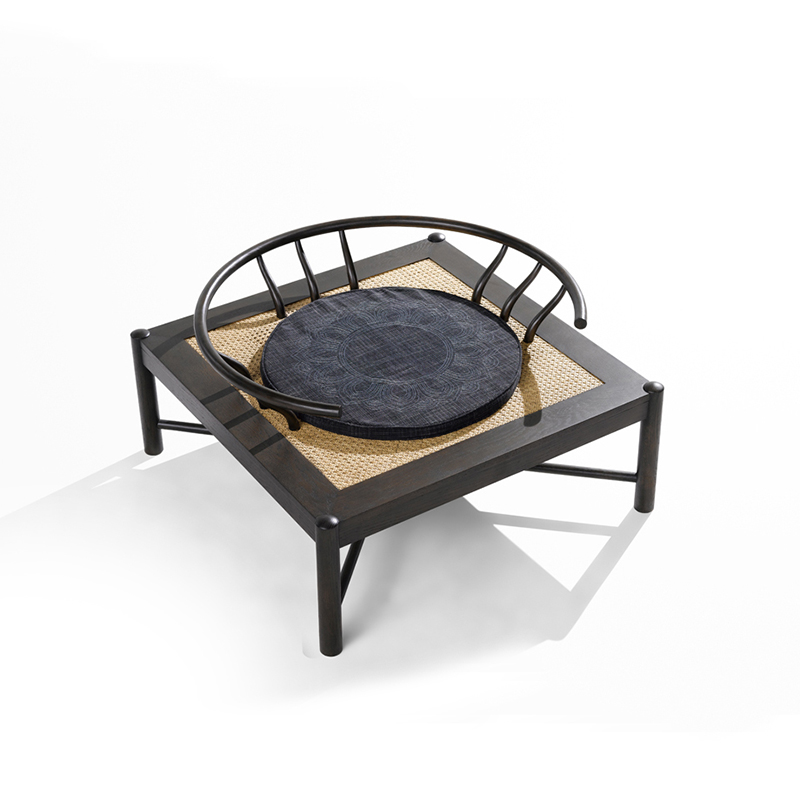 古人講天人合一,即自然與人相生、相融。此款沙發(fā)采用了極具東方風(fēng)格的高靠背形式,似中國傳統(tǒng)的圍屋概念。圍合,是中國人傳統(tǒng)的居住形式,也具華夏文明的“合”文化。色彩采用了黑灰兩色,顯穩(wěn)重大方。“一”字的書墨印紋,體現(xiàn)了道家的逍遙思想理念,以“一”字概括了自然萬物的統(tǒng)一性。