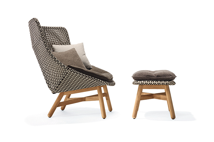 MBRACE takes a joyfully unconventional approach to outdoor furniture, bringing DEDON Fiber seating and a solid teak base together for the very first time. The result is an eye-catching, instantly likable collection of chairs — wingback, lounger, rocker and optional footstool — that captures the spirit of barefoot luxury while extending the DEDON design language into new, more Nordic territory.
