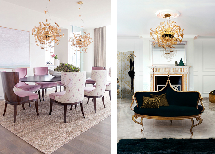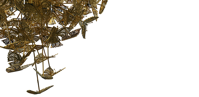 想象一群異域風(fēng)情的蝴蝶翩翩飛舞,這就是Nymph吊燈的靈感來源。這群優(yōu)雅的蝴蝶飛舞的姿態(tài)被KOKET用金銀絲勾勒出來,每一只蝴蝶都是由大師級別的工匠純手工制造,這是最無與倫比并且獨一無二的藝術(shù)品。