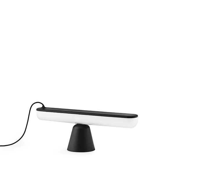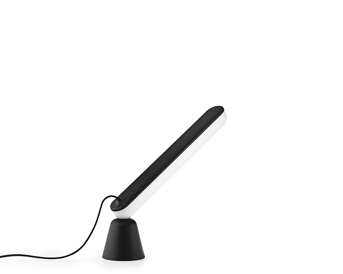 The lamp consists of two parts: a cone-shaped base and an oblong LED light source that are held together by magnets only. This allows Acrobat to adopt almost magical positions that surprise the viewer and challenge the traditional idea of an adjustable lamp. Acrobat has a minimalistic expression and its intelligent design means that it can be used both as a direct and indirect form of lighting. Acrobat is suitable as a desk lamp or to create atmospheric lighting, depending on how the lamp is placed on its base.